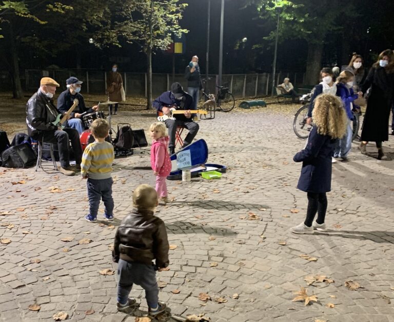 ↑近所の公園、演奏をしている人もいれば、それを聞いている人もたくさんいます。特に子供連れが多いです。