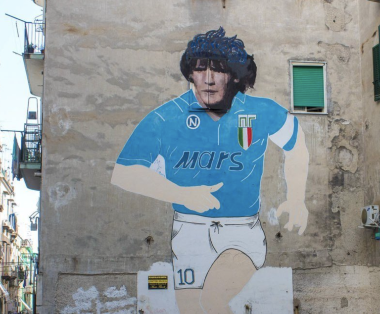 マラドーナのキャラクターとナポリの強烈なイメージ、ちょっと悪く、ある意味いい加減、そしてダークなイメージは、ナポリとマラドーナをすごくマッチングさせていて、今でもナポリではマラドーナは神のように崇められ、彼の背負っていた10番はナポリの唯一の永久欠番になっています。