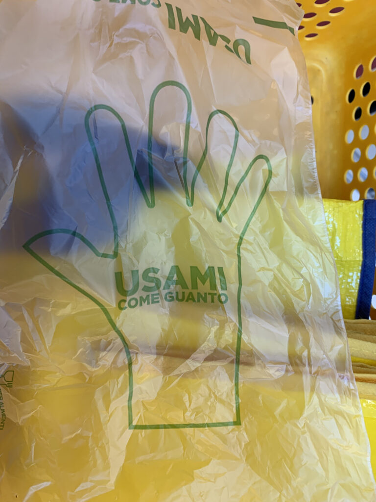 最近日本でもスーパーで買い物袋が有料になったそうですが、ここイタリアでは、私がイタリアに来た時には、もう有料だったように思います。31年前のことです。