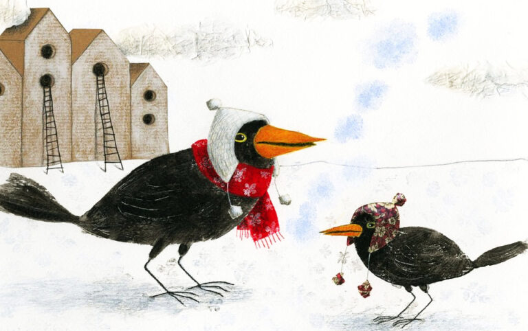 昔々、白い素敵な羽を持つクロウタドリが一匹がいました。それが食べ物を探しに巣から出たときに、意地悪な1月がそれを見て、雪を降らせたり、寒くしたりして、そのクロウタドリをイジメたのです。