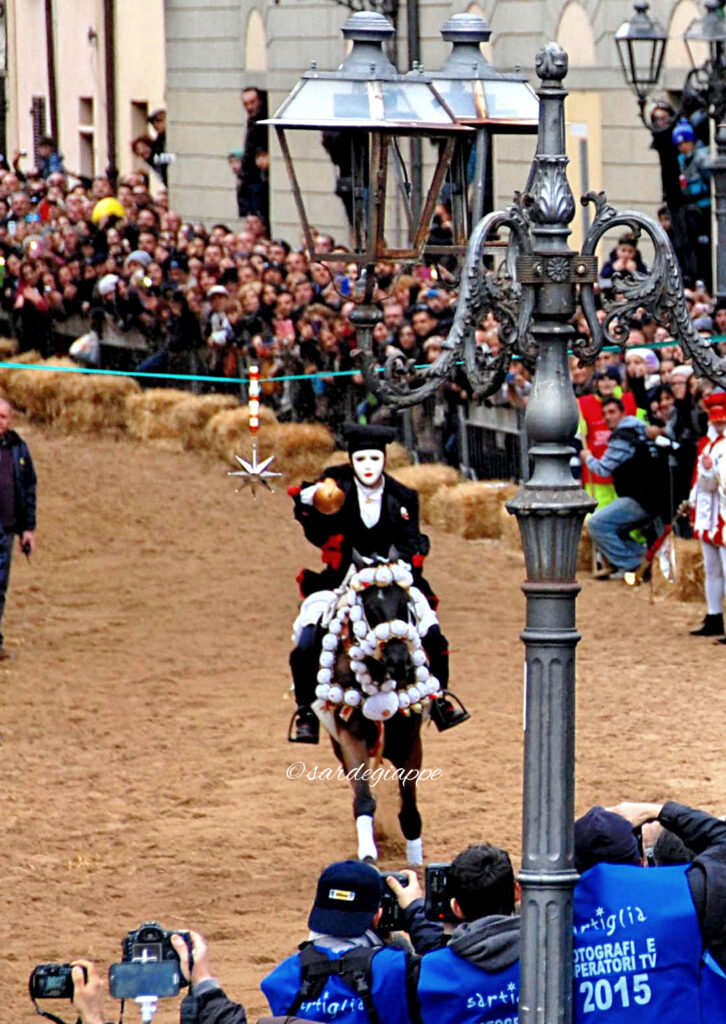 カーニバル期間で最も有名なイベントは、島の南西部で行われるサルティリア(Sartiglia)です。サルティリアは、それぞれの騎手が、剣で地面から3メートルの所にかかっているターゲットの星を突き刺します。